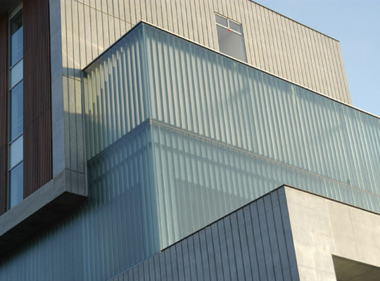 風圧強度を考慮し、内部にスチールマリオンを取付けた溝型ガラスフレームレスボックスユニットの製作から施工までしました。